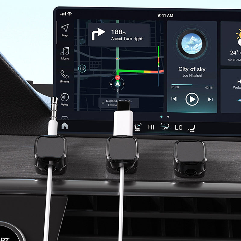 ADHESIVE INSTALLATION: Geniet van probleemloze installatie met de sterke zelfklevende achterkant. Bevestig de houders op elk oppervlak en houd je oplaadkabels, koptelefoons of andere snoeren binnen handbereik.